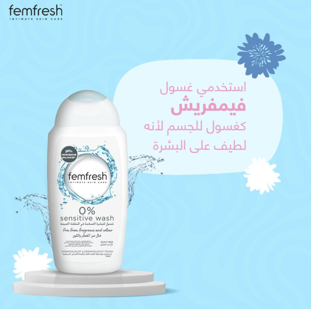 يُستخدم يوميًا لغسل المنطقة الحميمة. يُرغى القليل من الغسول ويُشطف جيدًا بالماء الدافئ.