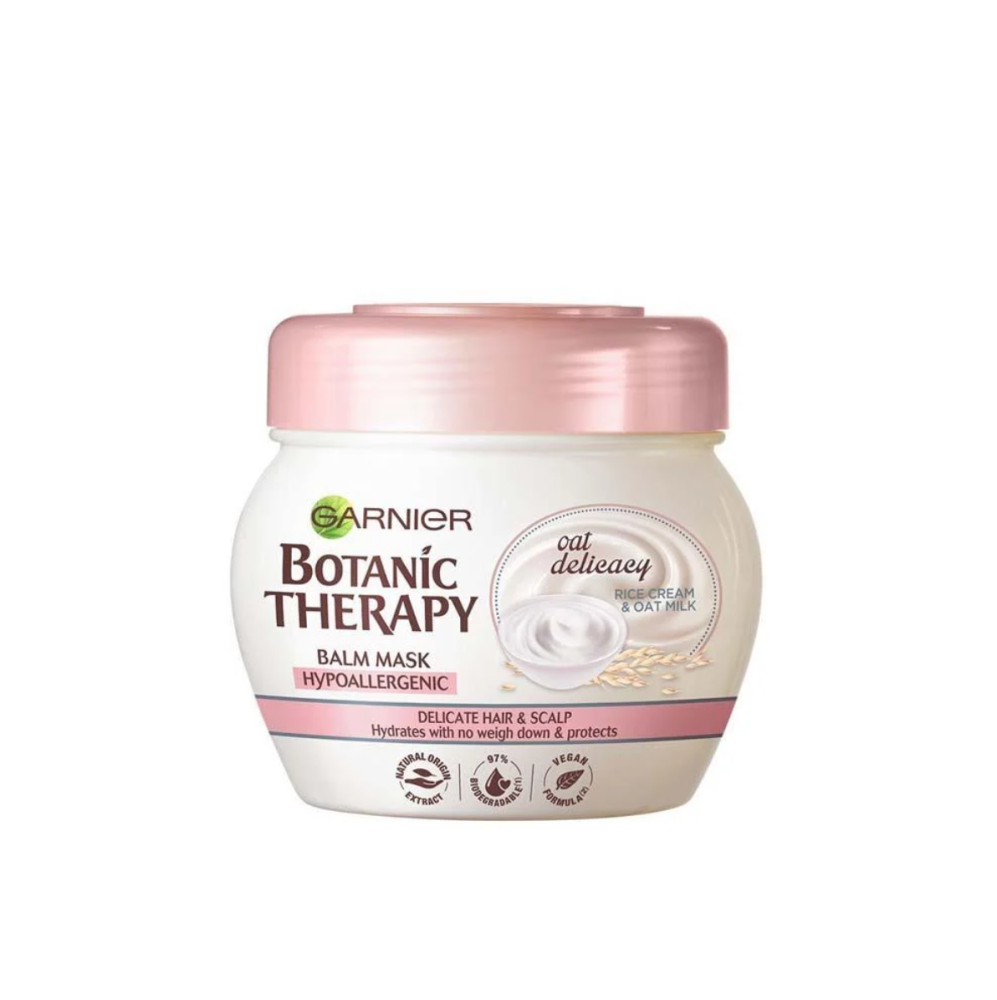 غارنييه بوتانيك ثيرابي ماسك بلسم للشعر مضاد للحساسية مصمم خصيصًا للعناية بالشعر الحساس وفروة الرأس المتهيجة. يتميز هذا الماسك بتركيبته الطبيعية التي تهدئ وترطب الشعر، مما يجعله ناعمًا ولامعًا دون التسبب في تهيج الجلد.