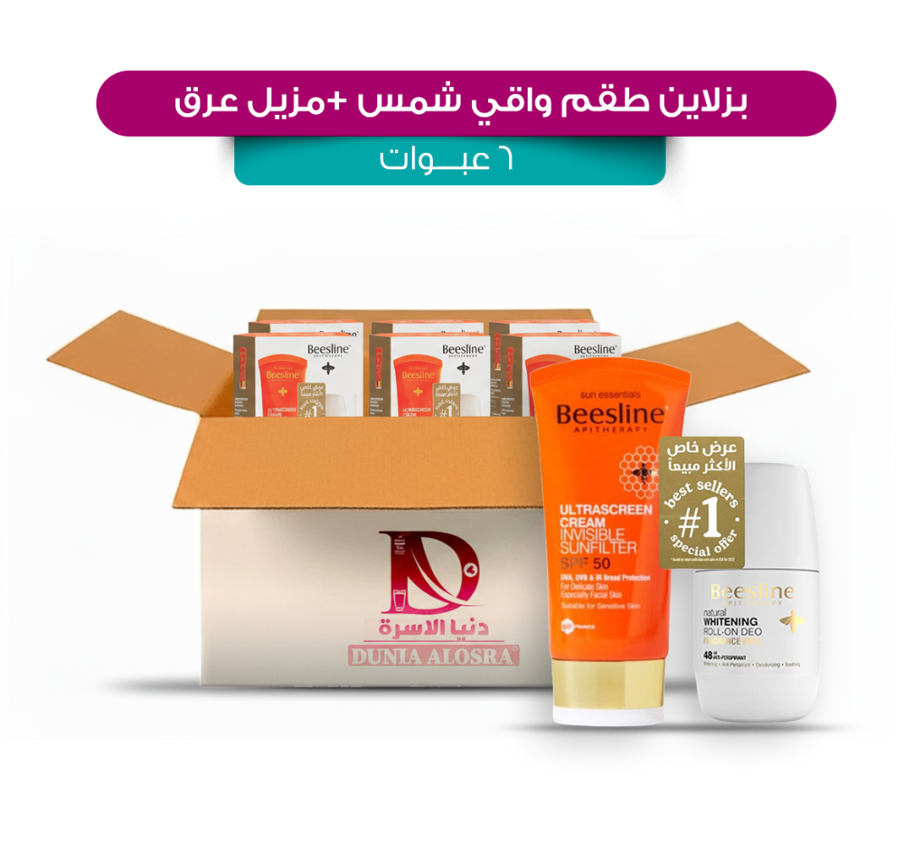 كرتون مزيل عرق رول اون ناتشرال 50 مل + كريم واقي شمس بعامل حماية 60 مل من بيزلين/ 6 عبوات