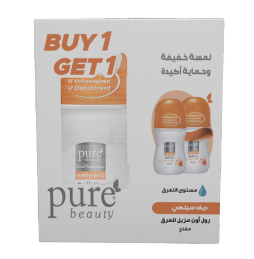 عرض مزيل عرق مضاد للتعرق مع تفتيح البشرة برائحة ديف سيلكي من بيور بيوتي يتكون من حبة + حبة مجاناً. يحتوي على مكونات فعالة تحمي من التعرق وتفتيح البشرة، مع ترك رائحة حريرية منعشة تدوم طوال اليوم.