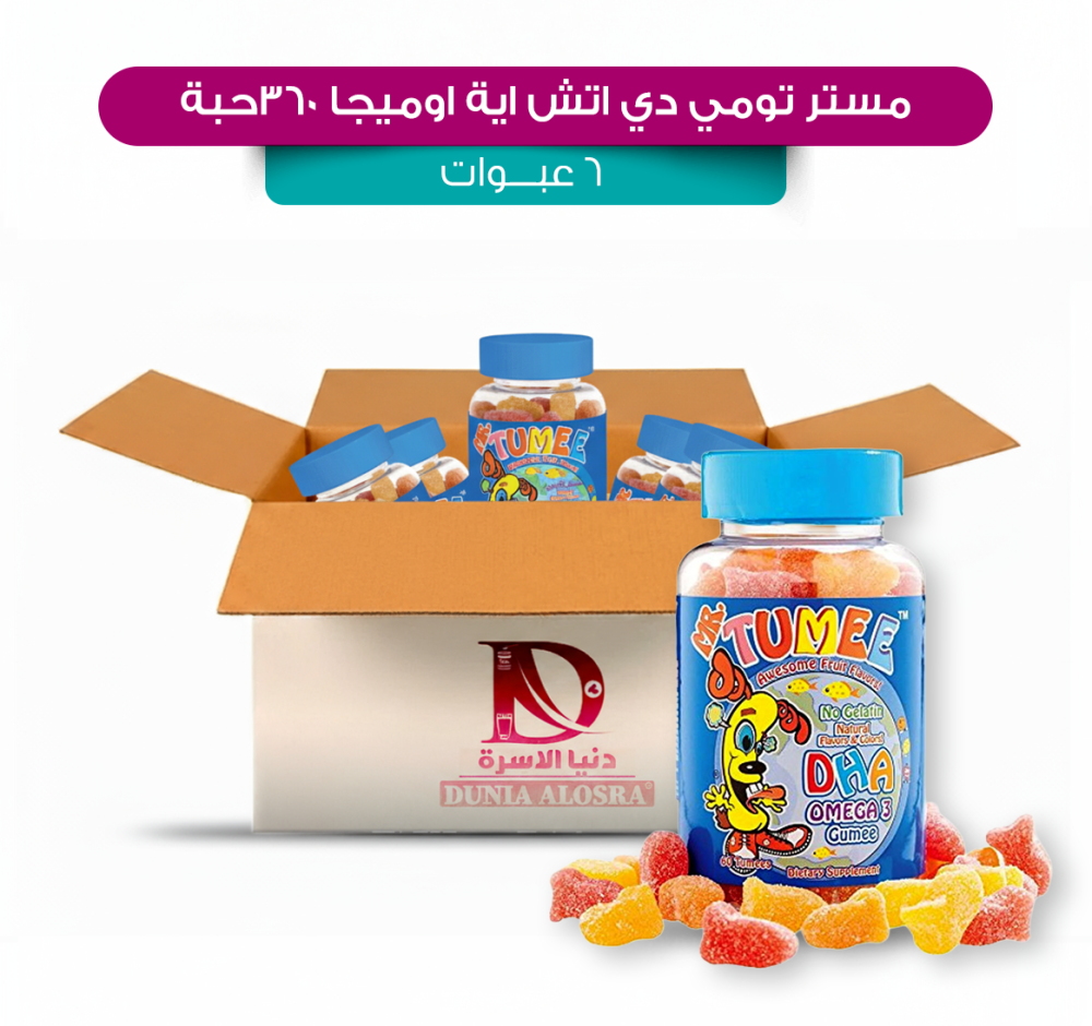 يحتوي فيتامين مستر تومي على الأوميجا 3 الذي يحتاجه جسم الاطفال الصغار والكبار وذلك بكميات مناسبة مما يساعد على نمو الجسم.