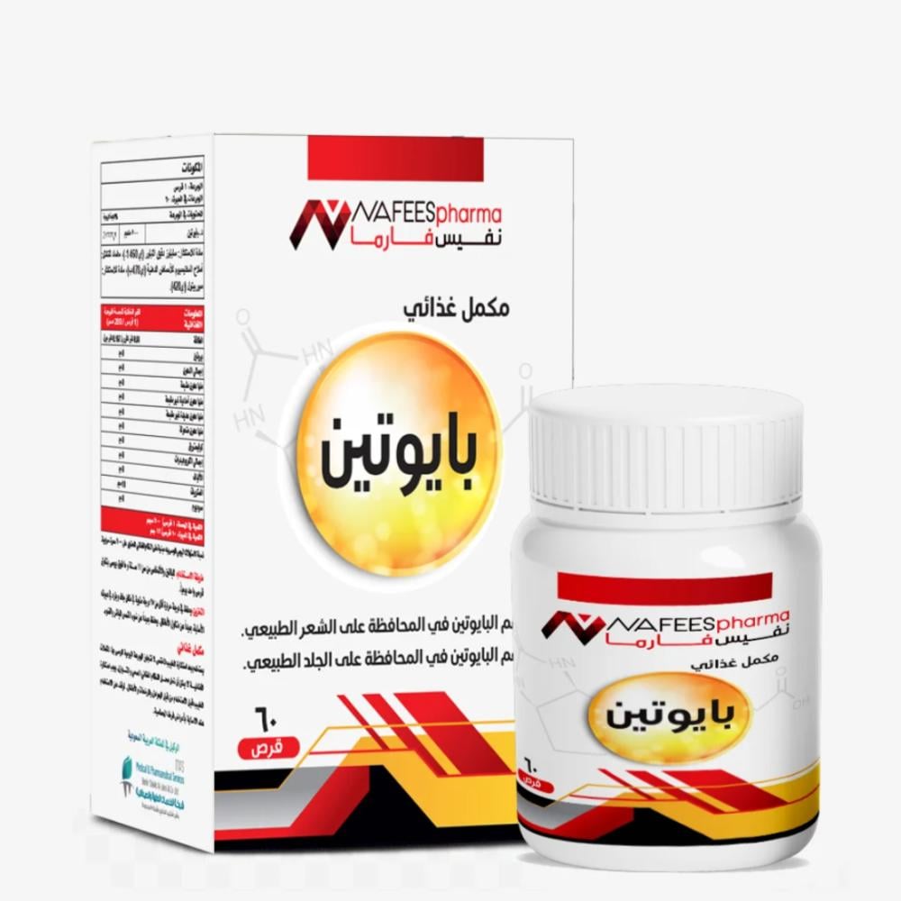 مكمل غذائي يحتوي علي البايوتين 1000 ميكروجرام أقراص"صحة الشعر: غالبًا ما يرتبط البيوتين بتعزيز نمو الشعر الصحي وقد يساعد في منع تساقط الشعر. صحة الجلد: يساهم في الحفاظ على صحة الجلد وقد يساعد في تحسين حالات الجلد مثل التهاب الجلد. قوة الأظافر: يمكن للبيوتين تقوية الأظافر وتقليل هشاشة الأظافر وتعزيز النمو. للبالغين والأشخاص من سن ١١ ســـنة و ما فوق، يوصى بتناول قرص واحد يوميا.