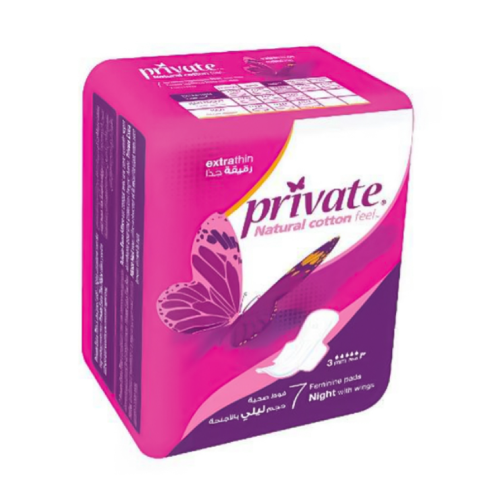Private Ultra Thin Cotton Night Sanitary Pads with Wings - 7 Pads