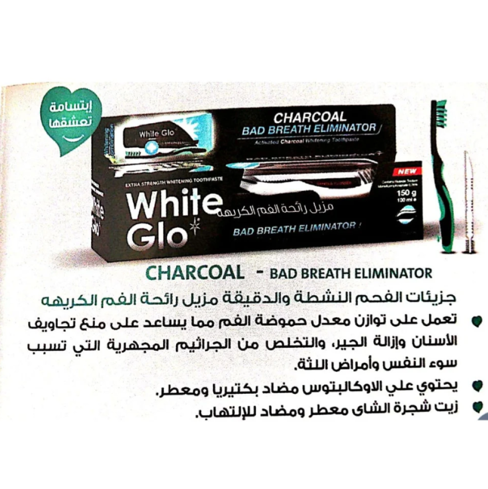 هل تُعاني من رائحة الفم الكريهة؟ هل تُريد التخلص من البكتيريا والجراثيم الضارة التي تُسبب المشاكل المُختلفة للأسنان؟ وايت جلو معجون أسنان مبيض بالفحم يقضي على رائحة الفم الكريهة 150 غم، الحل الأمثل للتخلص من مُشكلات الأسنان، ويُساعدك في العناية الكاملة بالفم والأسنان.