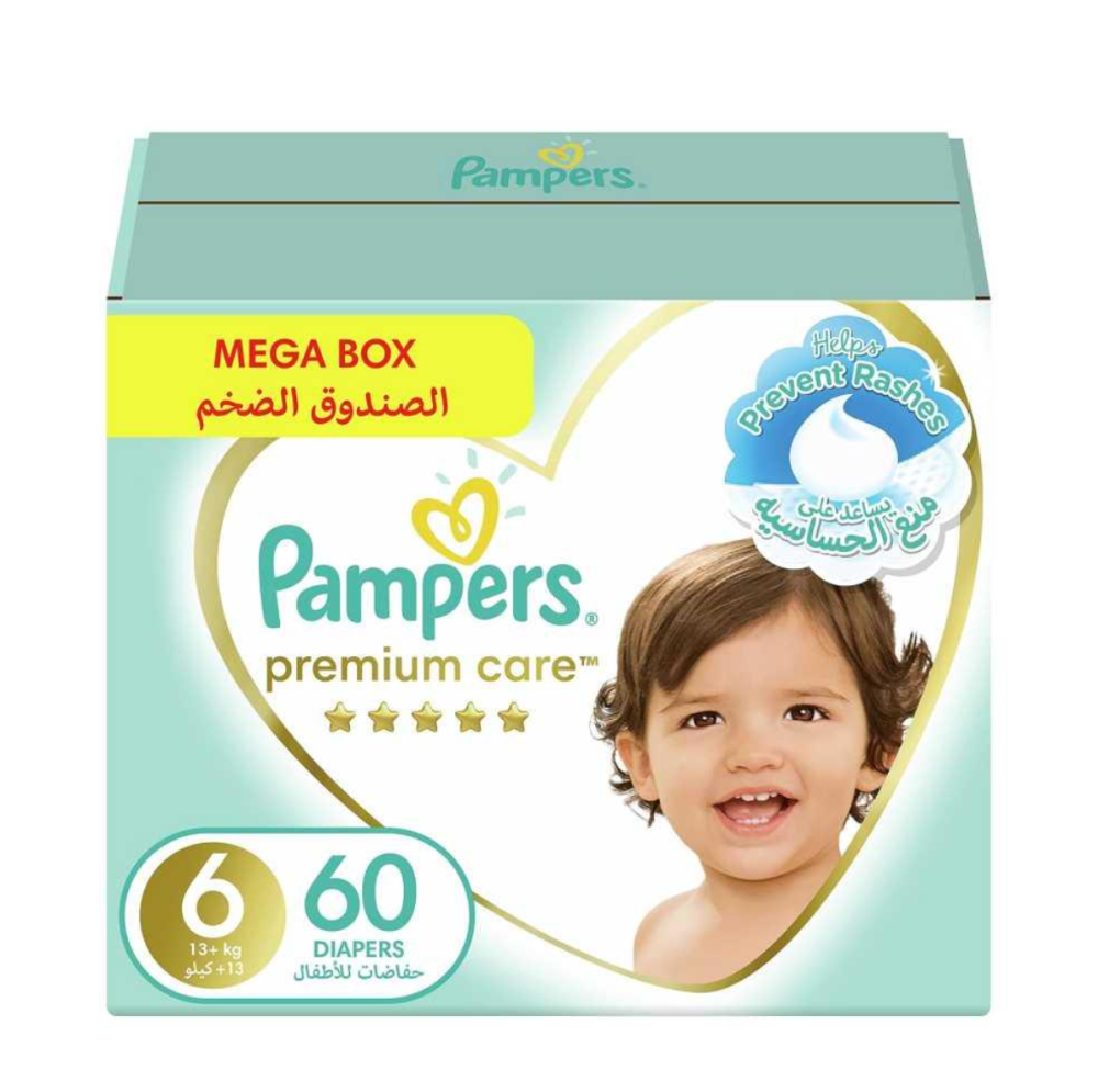 Pampers Premium Care, Size 6, Extra Large, 13+ kg, Mega Box, 60 Diapers